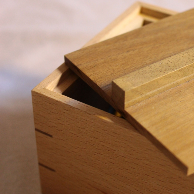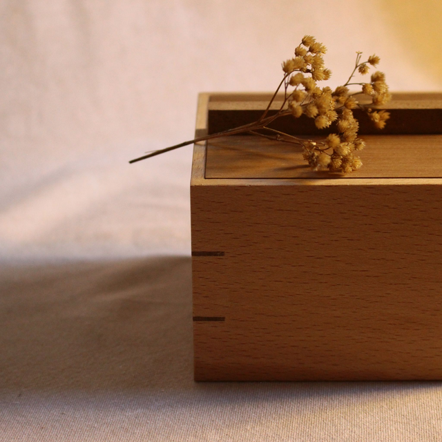 Boîte Carrée Élégante en Hêtre et Noyer